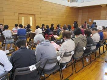 今回、教育ボランティア様には、測定ブースごとに学生2名とボランティア様1~2名がペアになり、学生と一緒になって、来られた住民の方々の測定を実施していただきました。当初、やや緊張した面持ちだった学生たちですが、教育ボランティア様から優しいお声かけをいただき、それぞれのブースではすぐに和やかな雰囲気が出来上がっていました。学生は、ボランティア様とブース内での動き方を相談して役割分担を決め、その後も臨機応変に工夫を凝らしながら測定を行っていました。今年も、例年同様95名と大勢の地域住民の方々が測定に来られましたが、教育ボランティア様と学生の素晴らしい連携プレーのおかげで、次々と来られる住民さんに対しスムーズに測定を行い、大きな混乱もなく終えることができました。事業終了後には実施後カンファレンスを行い、各ブースを担当した教育ボランティア様や学生から、次年度に向けた改善点や課題が提案されました。