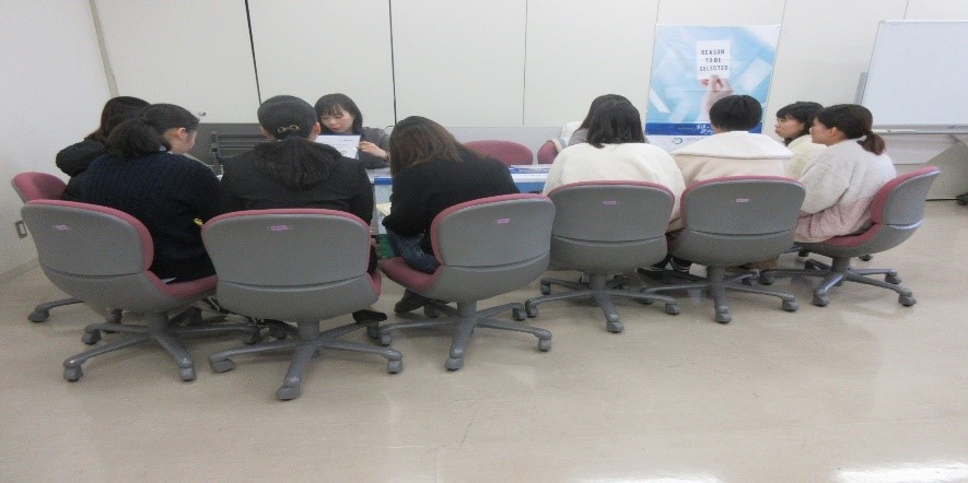現在の4年生から進路決定に至るまでの経験談を聞きました。自分のやりたいことが明確になるまでの葛藤や、就職活動の方法・就職先決定までのプロセス、進学先の探し方・勉強方法など、さまざまな経験談を聞くことが出来ました。同じような悩みを抱えている就職活動や進学を控える学生にとって、進路決定までの流れがイメージでき、モチベーションを高める機会となりました。