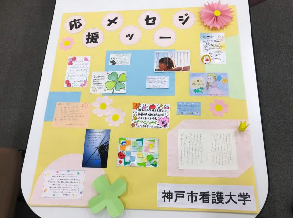 神戸市看護大学では、神戸市が新型コロナウイルスに感染した「軽症や無症状の患者」を受け入れる宿泊療養施設として確保し運営している神戸市内の施設に応援メッセージを届けました。