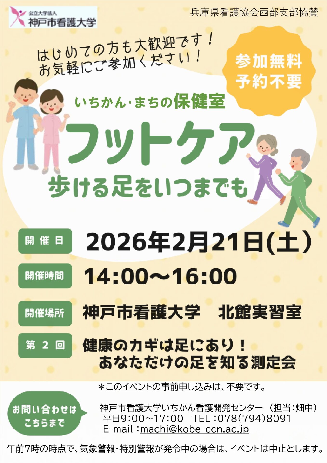 【いちかん・まちの保健室】「フットケア 歩ける足をいつまでも」(第2回)開催のお知らせ