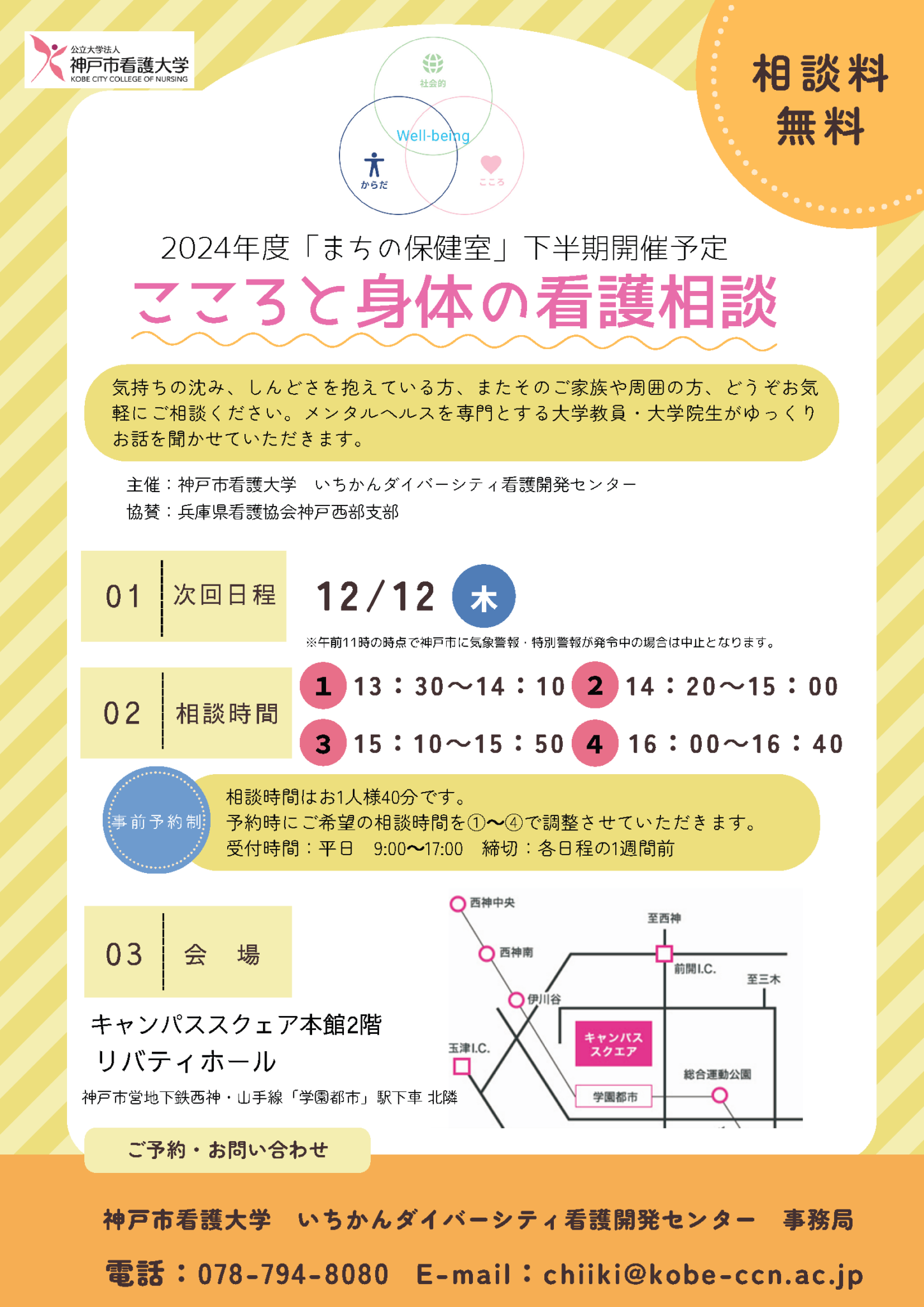 【いちかん・まちの保健室】「こころと身体の看護相談」次回開催日程(12/11)のお知らせ